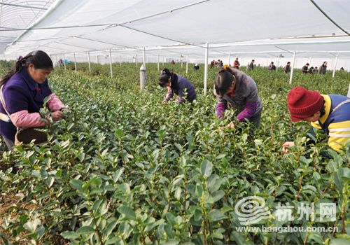 杭州网讯  大地回春,万物复苏。这几天,淳安县千岛湖畔的浙西茶叶良种科技示范场一派繁忙,茶农们开始了首批新茶的采摘,拉开了2012年杭州市春茶开采的序幕。