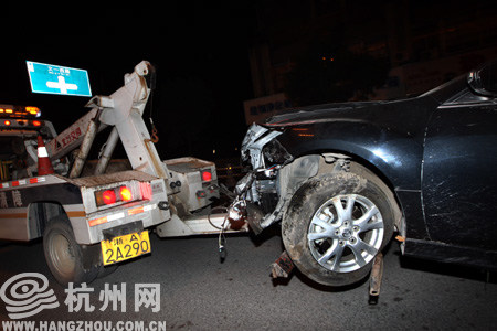 凌晨5时许,经过交警缜密地现场勘验后轿车被拖离现场。