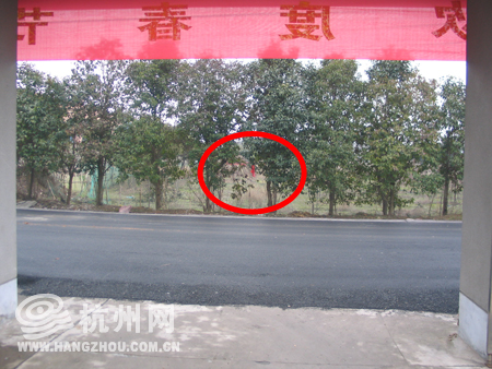 从村委会出来,小刚在对面的一棵小树上系了一只红色的塑料袋作标记。