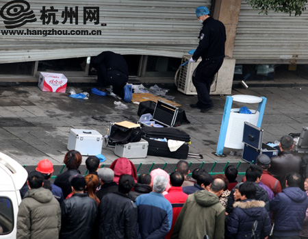 杭州网热线85052222接到网友老朱报料,绍兴路香积寺路口,一家休闲店的卷帘门半开着,里面一片狼籍,门口有很多警车警察,估计是出事了。