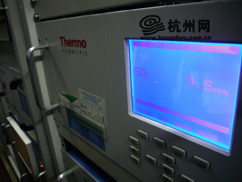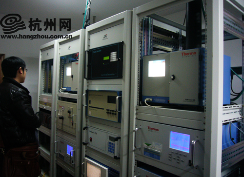 监测站设在朝晖四区的一幢居民楼顶层,六楼的一户居民房里摆放着几台大型仪器,杭州市空气质量检测中心站高级工程师洪盛茂教授告诉记者,设在朝晖四区里的检测仪器总共分为两个部分,一部分是检测空气中所有微量颗粒的实时浓度,还有一部分检测每立方米空气中含有的颗粒物数量,两部分的数据都将滚动传输回杭州市空气质量监测中心站总控制台。
