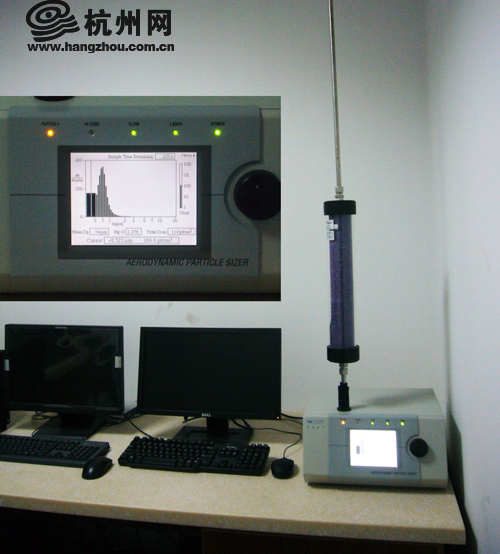 这台仪器叫粒径谱仪,用来检测每立方米空气中含有的颗粒物数量