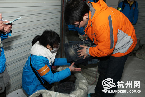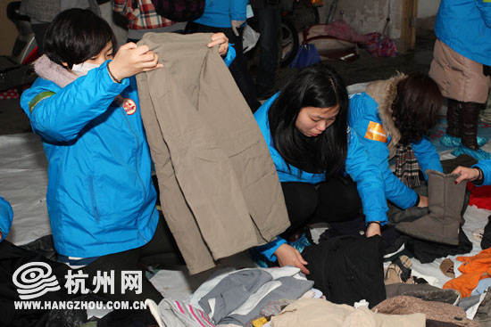 “大家把衣服按照类别分好,这样对折,才能保证衣服的整齐!”上午11点,杭州网义工小分队的负责人桑榆,正指挥着义工们整理“爱在衣加一”活动中募集到的衣物。存放旧衣物的仓库位于学院路附近的一个地下室,里面推满了大大小小,30多个大麻袋的衣服。