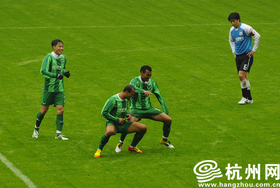 一场小比赛就吸引了众多球迷冒雨观战,这让初来乍到的球队主帅冈田武史有些惊讶,不过,除了场外球迷,球场内的表现同样让他欣喜,年轻小将们出色的表现让他十分满意,更重要的是外援发挥同样给力,刚入球队的巴西外援法布雷西奥在自己的绿城处子秀中凭借个人能力就攻入一球,这让在场所有人眼前一亮。