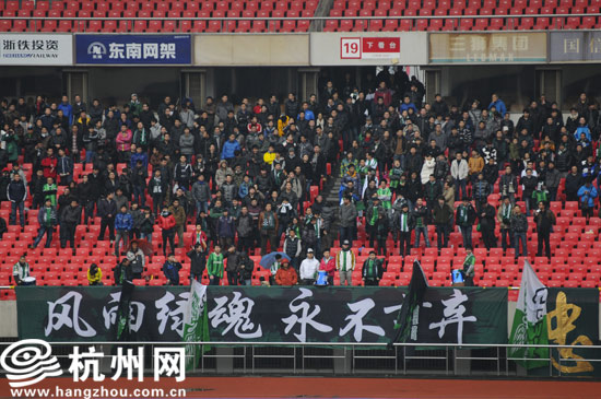 杭州网讯 杭城这几周一直被淅淅沥沥的小雨笼罩着,今天的天气依旧如此,但即便这样刮风下雨的日子,也挡不住绿城球迷的热情。今天下午,空荡了近一年的黄龙体育场涌入了久违的绿魂身影。