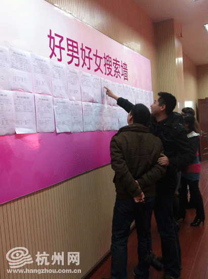 嘉宾们饶有兴趣地驻足于“好男好女搜索墙”前,阅览张贴出来的“个人信息”。