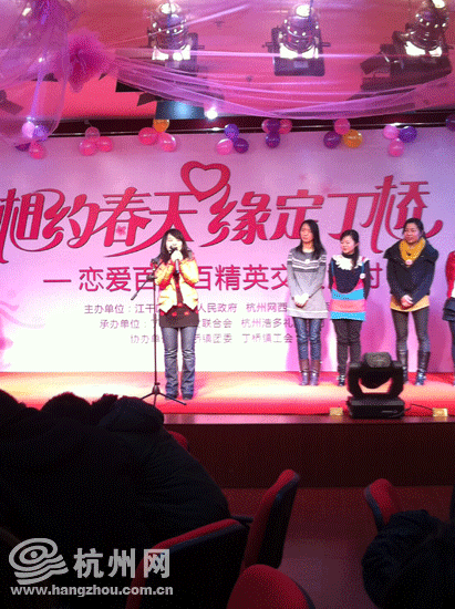 杭州网讯 春天来了,它唤醒了人们对爱情的渴望。今天下午,80多名青年男女聚集在皋亭山下历史悠久的丁桥镇,参加由江干区丁桥镇人民政府和杭州网西湖交友频道主办的“相约春天•缘定丁桥”恋爱百分百精英交友派对活动。