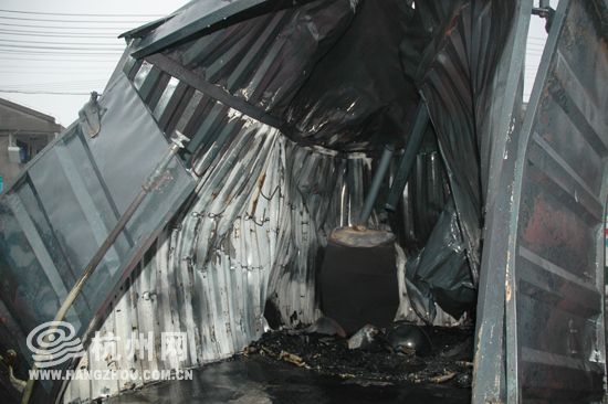 很快火势被控制住,消防队员冲上去,把车上还没爆炸的煤气罐卸下来,“我们一共抢出了十六七个罐子,马上把他们堆到附近的烂泥地里。”消防队员说。