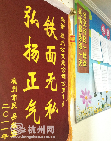 现在,这面锦旗就挂在服务中心里,与千千万万乘客的寄托一样,时时激励着公交热线服务中心的这群娘子军们。