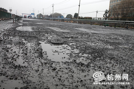 记者从公路工作人员处了解到:东西大道之所以会有这样的惨状,很大原因是因为正在进行拓宽工程——15省道长乐至余杭段改建工程。工程去年年中开工,完工后,东西大道将由现在的双向2车道增宽为双向4车道。现在的道路,是封闭了一半路面进行通车。又由于路面施工的缘故,工程车辆来往也多。最近接连下雨,能够修补路面时间少了,修补施工的质量也会因为下雨下降。