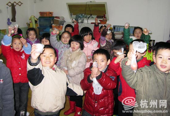 杭州网讯 今天是女同胞们的节日,虽然微博上流传着一则让妈妈多干活的“三八父女节”笑话,基本上今天的各种庆祝活动都跟孩子们无关。可杭州市东新实验幼托园却给小朋友们下达了一项独具匠心的任务,这任务还有一个特别霸气的名字:“护蛋一日”!