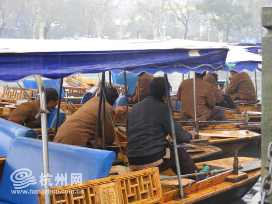 船老大们说,西湖边共有28个码头,每个码头有10支摇橹船,以前每天每支船都能在湖上跑上三四趟,现在有的时候一趟生意都没有!