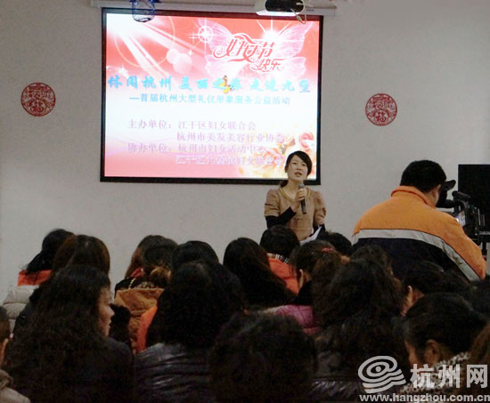 杭州网讯 “女为悦己者容。”今天(3月8日)上午,由杭州市妇女活动中心等单位主办的大型礼仪形象服务公益会展,在江干区九堡镇格畈社区“新杭州人文化家园”中举行。