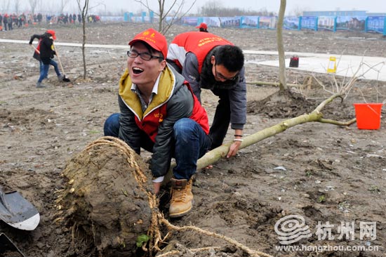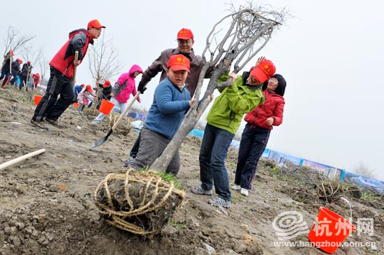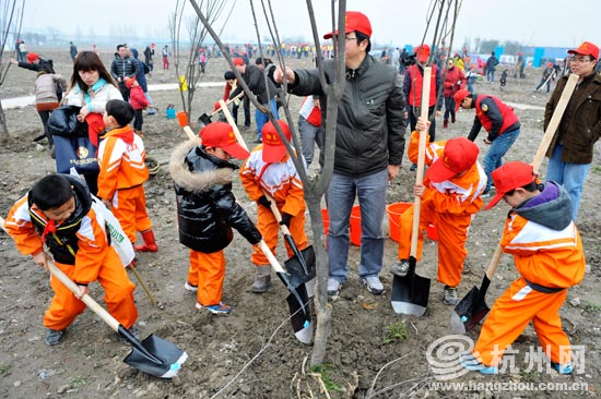 在3月12日植树节之际,为了进一步贯彻落实科学发展观,积极响应市委市政府建设生态型城市的号召,大力推进生态文明建设,加快三江两岸城乡区域统筹发展,切实保护我市的生态环境,杭州市环保局、共青团杭州市委、之江国家旅游度假区管委会、杭州市青年联合会、杭州市学生联合会在美丽的钱塘江畔联合开展了杭州市“青少年生态文明实践工程”启动仪式暨杭州市“青少年生态工程——三江两岸我们在行动”青少年集体植树活动。参加本次植树活动人员有来自杭州各界青少年代表,市青联委员及子女、市环保局团员青年、在杭高校大学生等共计300余人。