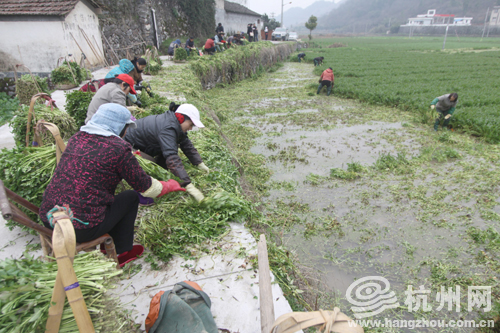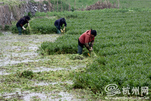 杭州网讯 好不容易盼来了晴天,这两天,建德大慈岩镇陈店村的妇女们抓紧时机,下田收割水芹菜,经过清洗整理后运往杭州的蔬菜市场。