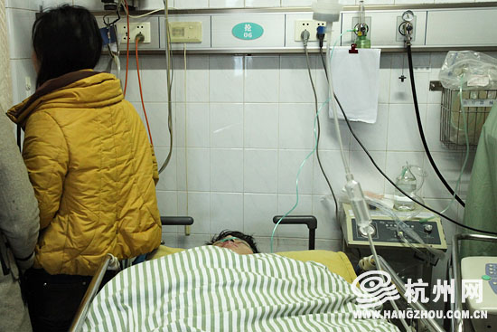 小吴躺在病床上,妻子陪在边上