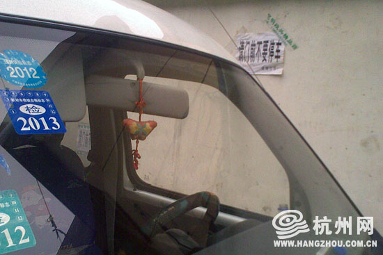 墙上贴着“门前请不要停车”,但是车子依然停在了下面。
