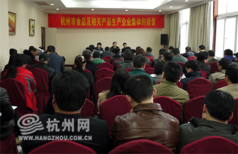 杭州网讯 今天,杭州市召开食品相关产品、食品添加剂和化妆品生产企业集体约谈会。今明两天,杭州有近400家食品生产企业的法人代表亲赴会议现场接受“约谈”,并签下《浙江省食品生产企业质量安全主体责任承诺书》。