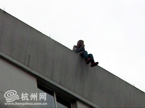 女孩坐在银地大厦楼顶,命悬一线。