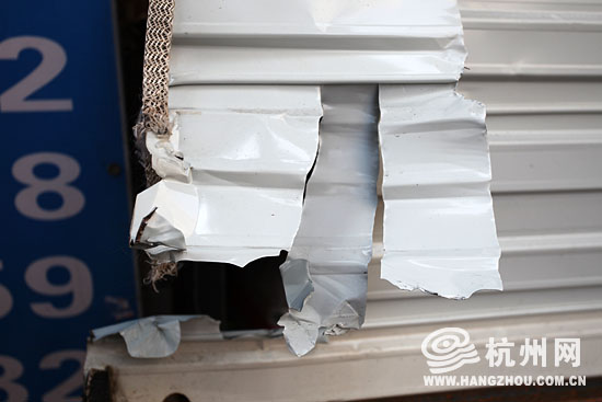 “小偷是把一边的轨道剪破了一条口子,然后破坏掉一部分卷闸门,钻进去把东西偷走了。”过来的修理卷闸门的小王师傅告诉记者,“现在的手动卷闸门没有以前的质量好,电动的要好很多。”