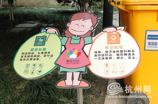 这边是“竞拍”垃圾桶,那边又来了“垃圾大使”。在西湖区莲花社区,有一个叫做“莲花阿姨”的大明星,说她“大明星”是因为在社区里,从老人到小孩没有一个不认识她,而她只是一块立在分类垃圾桶边上的指示牌。