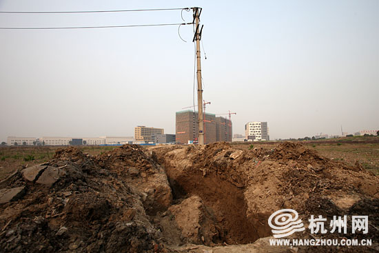 事发地点是一块非常开阔的空地,四周都被围墙圈起来。挖开的地面面积大约有二、三十平方,紧挨着一根电线杆。