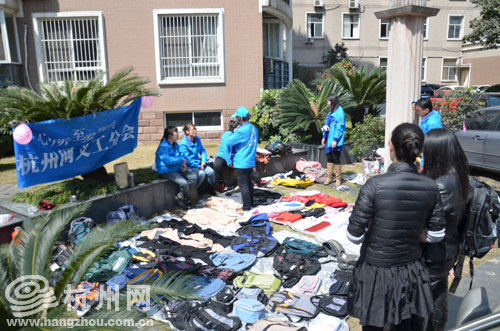 原来,接到义工们摆地摊义卖包包的请求后,浙江波普物业副总经理陈国庆马上召集了物业的工作人员,特意在小区广场上腾出了一个场地,临时搭建了个“义卖包包专区”。