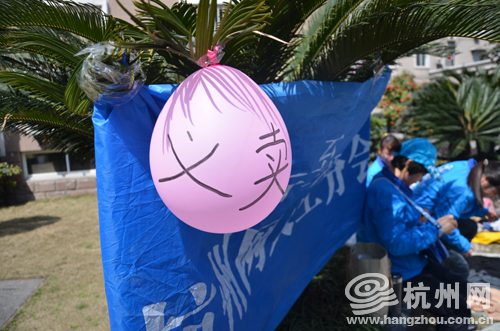 杭州网讯 3月24日,杭州盼来了久违的阳光。不少人都选择了踏青郊游,但对杭州网义工分会的10来位义工来说,他们一大早就忙起了“地摊活”,义卖爱心包。
