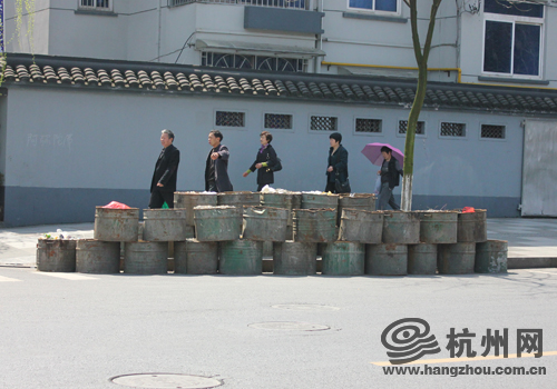 更糟糕的是,此处连接着吴山广场和柳浪闻莺,来往游人颇多。如此脏乱的“垃圾桶”摆放在马路边,季女士认为非常影响杭州的城市形象。“前几天下雨,水桶里的淤泥都漏出来,把马路搞的脏兮兮的。这几天气温上去了,淤泥开始发臭,路过的时候都要屏住呼吸。而且,这么脏的桶放在那儿,行人都一位是垃圾桶,有什么垃圾都往里面扔,弄得周围更加脏乱。”