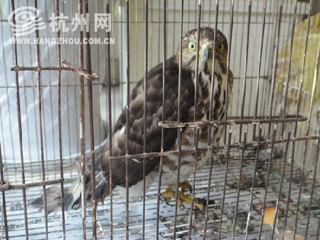 杭州网讯 凤头鹰是国家二级保护动物,可这样的珍惜鸟类却被市民发现,出现在了杭州的一个花鸟市场里。