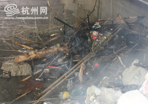 滚滚浓烟,系桥下垃圾燃烧所致。