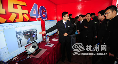 杭州网讯 高清的画面、流畅的网络、多路视频同步播放,享受峰值每秒80兆的超级带宽,今天下午,记者走上杭州B1快速公交车,切身体验了4G网络的魅力。