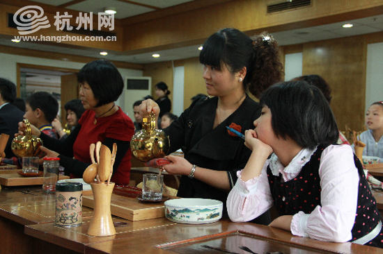 记者了解到,从3月12日—3月26日,半个月的报名时间里,共接到了近200户家庭的报名电话,但为了保证教学质量,经过精挑细选,第一期的培训中国茶叶博物馆筛选出了16户家庭来“打头阵”!主要培训西湖龙井茶的冲泡技法。这样的小班教学称为“精品课堂”可一点也不为过吧!