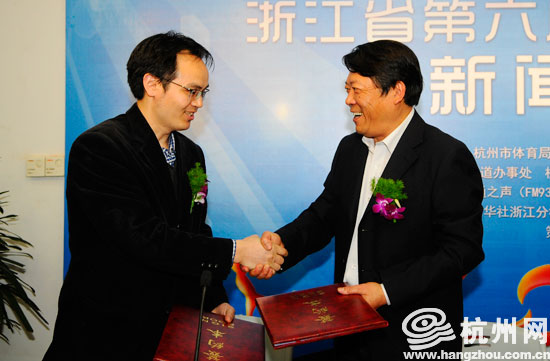 在今天的新闻发布会现场,杭州网与黄龙体育中心签署了战略合作协议。