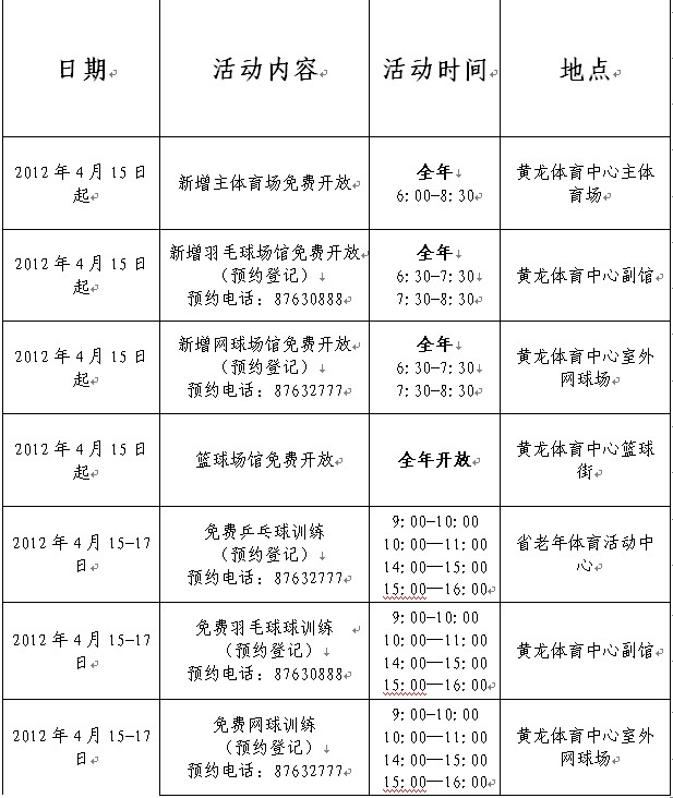 场馆免费开放时间