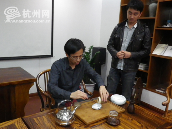 显然,他们一定不是第一次接触茶艺了!详细一问才知道,这两个大男孩都已经在下沙开了一个茶艺培训室了!