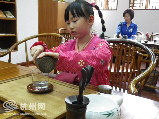 杭州网讯 “表演前先站在这里给大家鞠个躬。”“动作要慢慢的,让每一片茶叶都被充分地浸透”“一二三(喊节拍)……”小孩子练习茶艺,可把当妈的忙活坏了!