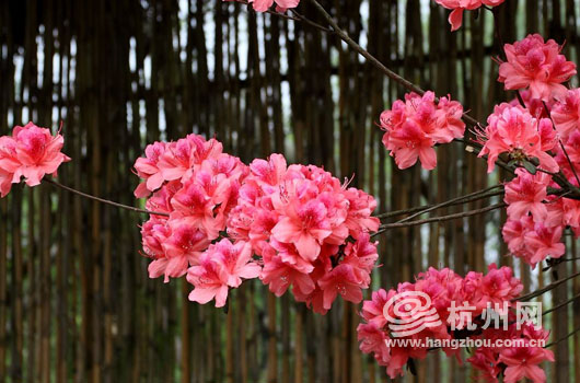 开辟深入湿地鱼塘的游览路线,沿塘埂的踏青步道,布置杜鹃花岛,并配备杭州传统工艺的“中国红”油布伞及休息桌椅,与杜鹃花岛的的红色,相得益彰。杜鹃泛红的景色可近看,可远观。踏着蜿蜒的塘埂栈道,直至450年树龄的杜鹃花前,可观赏到数万朵杜鹃同时花开一树的壮观场景。