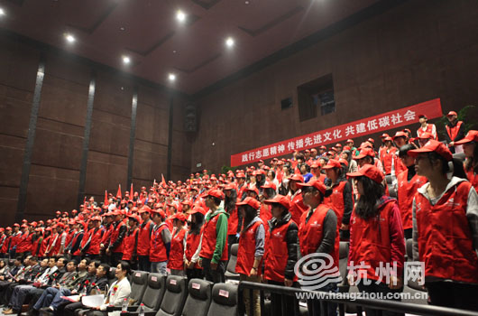 “我愿意成为一名光荣的志愿者。我承诺:尽已所能,不计报酬,帮助他人,服务社会……”4月15日上午,中国杭州低碳科技馆内响起了庄严的誓言,来自杭州各大高校的青年朋友们相聚在这里,共同见证中国杭州低碳科技馆志愿者服务总队的成立。