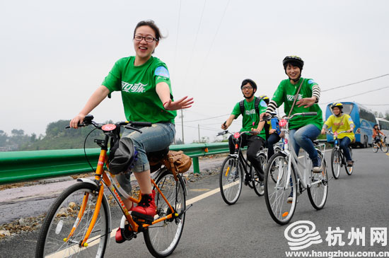 4月15日,近百民杭州市民携家人、爱人来到千岛湖,参加了由杭州中萃食品有限公司主办的“低碳达人”骑行活动。边骑着自行车,边游览千岛湖山山水水,既运动环保,又享受到了亲情、爱情带来的温暖。