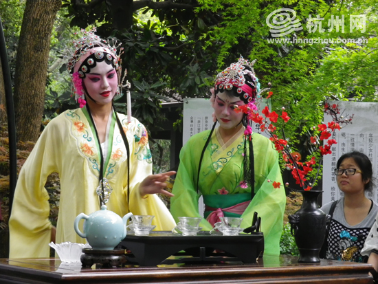 龙谷丽人的昆曲茶艺表演让旁边的游客听得入了神