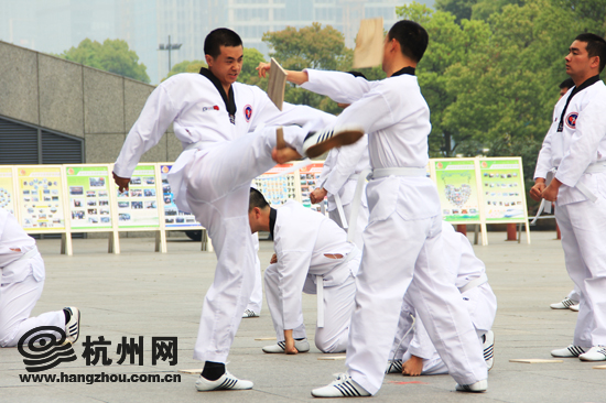 新警学院做跆拳道表演
