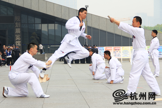 新警学员做跆拳道表演