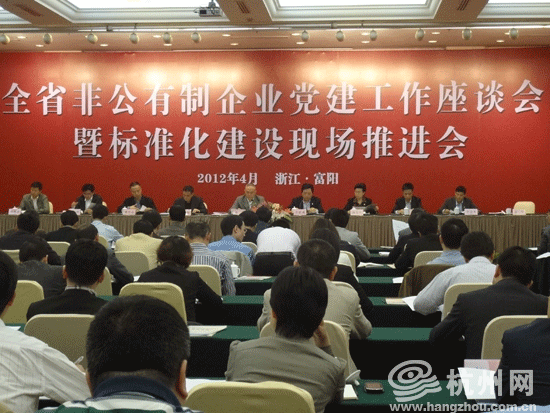 杭州网讯 今天下午,全省非公有制企业党建工作座谈会暨标准化建设现场推进会在杭州富阳召开。省委常委、组织部长蔡奇出席并讲话。会议要求,认真学习贯彻全国非公有制企业党的建设工作会议精神,紧密结合我省实际,找准工作定位,把握正确方向,以改革创新的精神,推动我省非公有制企业党建工作继续走在全国前列。