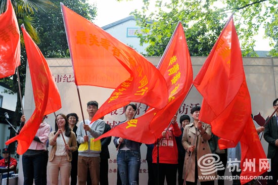 仪式上,团市委、上城区和杭州网等相关领导为寻访活动队伍代表授旗。同时,以上城区为第一站,开展了红色毅行活动,70余名团员青年组成小分队走访了浙江省第一个党团组织发源地、钱学森故居、风雨茅庐等13个红色体验点。据悉,在接下来的5个月中,不同类别的寻访活动将在杭州各地分散开展。