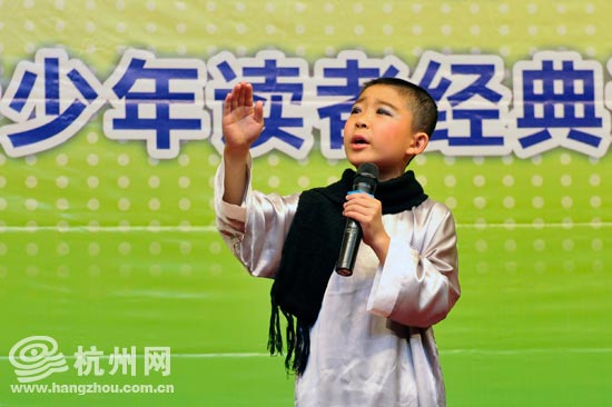 杭州网讯 4月21日上午,首届沪浙皖青少年读者诵读邀请大赛在浙江图书馆隆重举行,从9岁的三年级小朋友,到19岁的大学学长,依次登台朗诵。别看年龄小,几位声线独特、训练有素的小朋友,一张口就把播音专业毕业的主持人震住了:闭上眼听的话,你根本不会想到这铿锵豪迈的声音会是他们发出来的。
