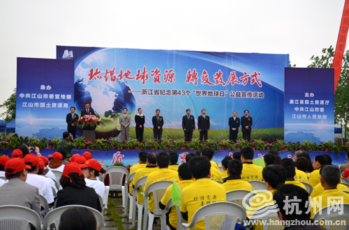 杭州网讯 4月21日,在世界自然遗产地江郎山下,由浙江省国土资源厅和江山市委、江山市人民政府共同主办的第43个“世界地球日”公益宣传活动在这里拉开帷幕。