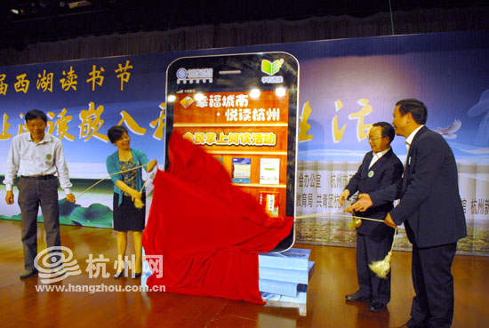 杭州市副市长陈小平,浙江省新闻出版局副局长范春梅,中国移动浙江公司副总经理级资深经理、杭州分公司总经理林长春共同为“幸福城市·悦读杭州”全民掌上阅读活动揭牌,倡议大家通过手机阅读的形式践行节能减排和绿色环保的社会责任。