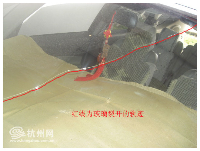 图为张先生江淮和悦RS破损的前挡风玻璃