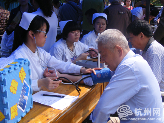杭州师范大学青年志愿服务队为老人测量血压